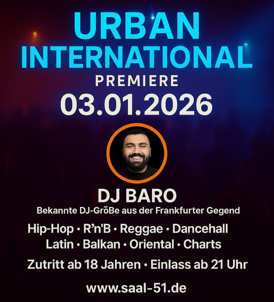 Der Tempel of Music startet das neue Jahr mit einer spektakulären Premiere – und niemand Geringeres als DJ BARO, eine bekannte DJ-Größe aus der Frankfurter Gegend, führt euch durch eine Nacht voller internationaler Urban-Vibes!